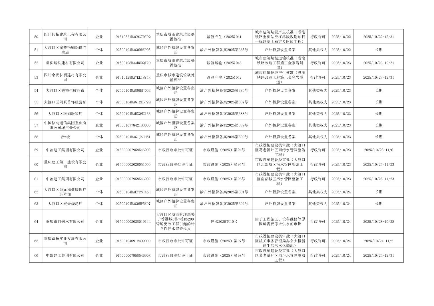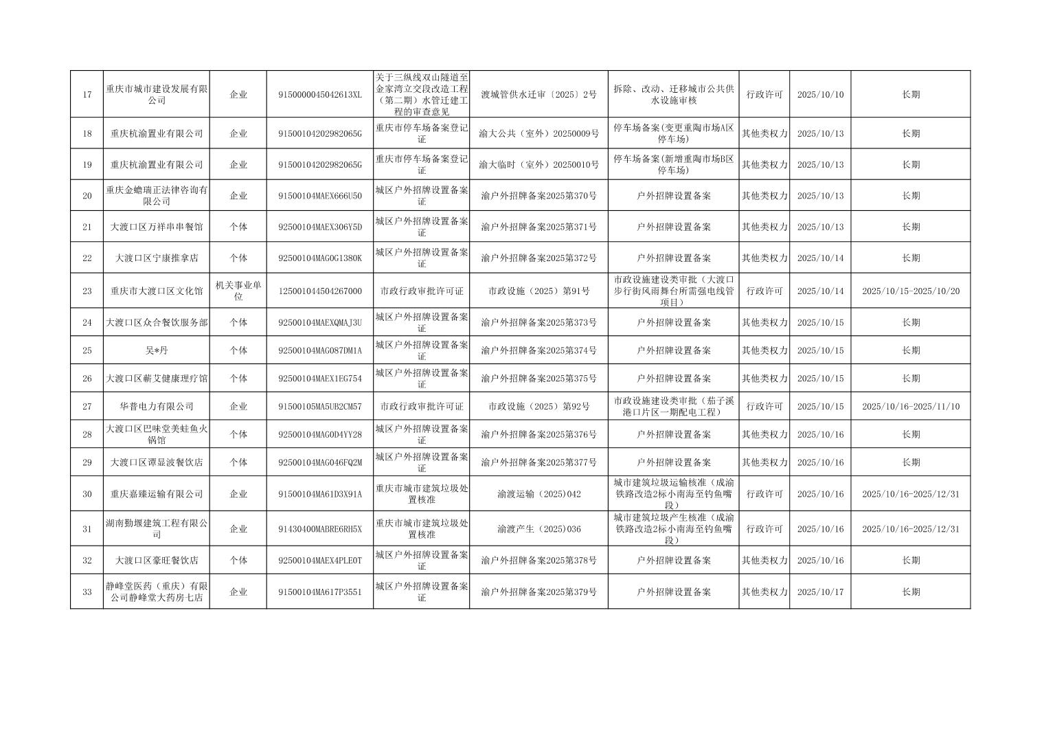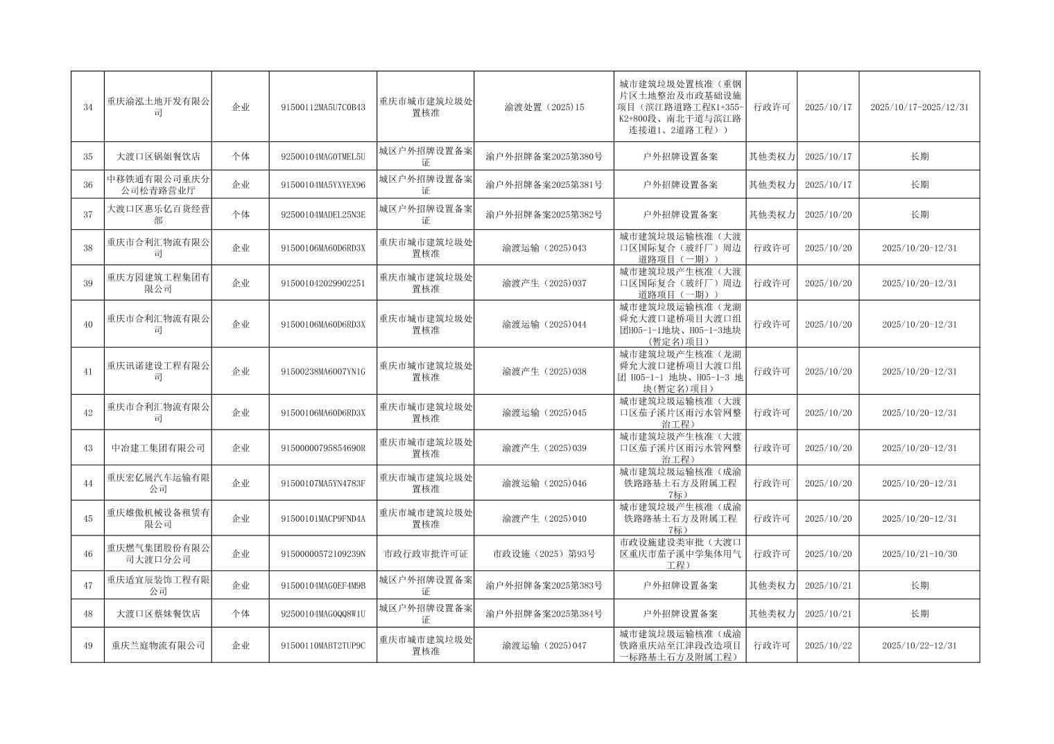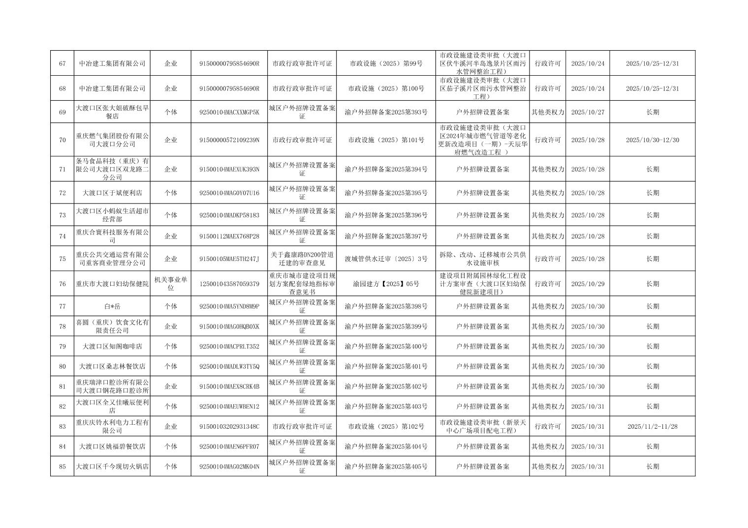 大渡口區(qū)城市管理局行政許可和其他對外管理服務(wù)事項(xiàng)辦理結(jié)果公示(2025年9月29日—2025年10月31日)