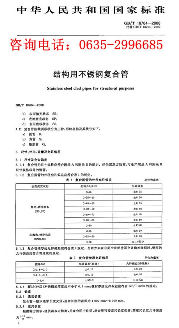 不銹鋼復(fù)合管壁厚、外徑允許偏差、執(zhí)行標(biāo)準(zhǔn)