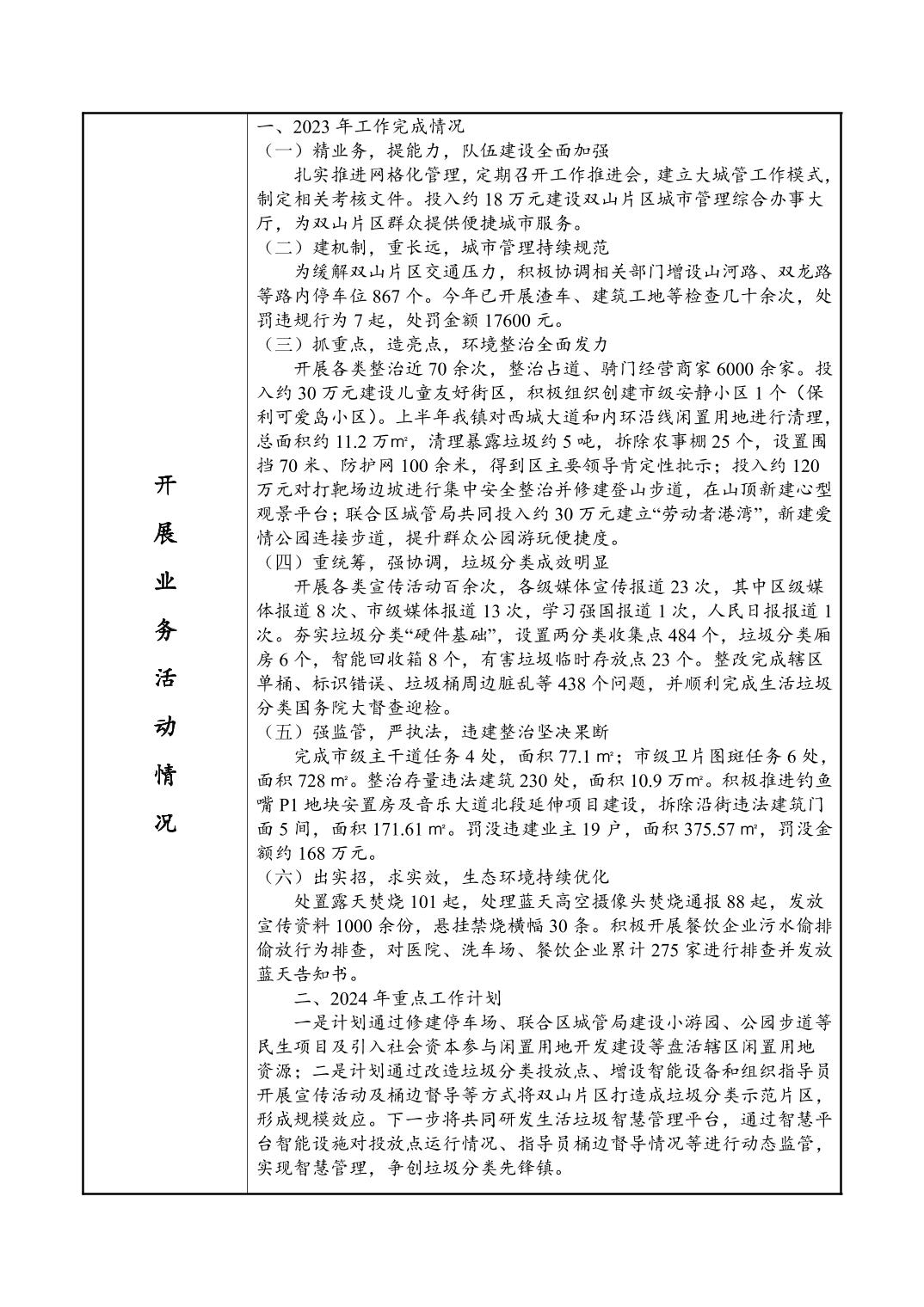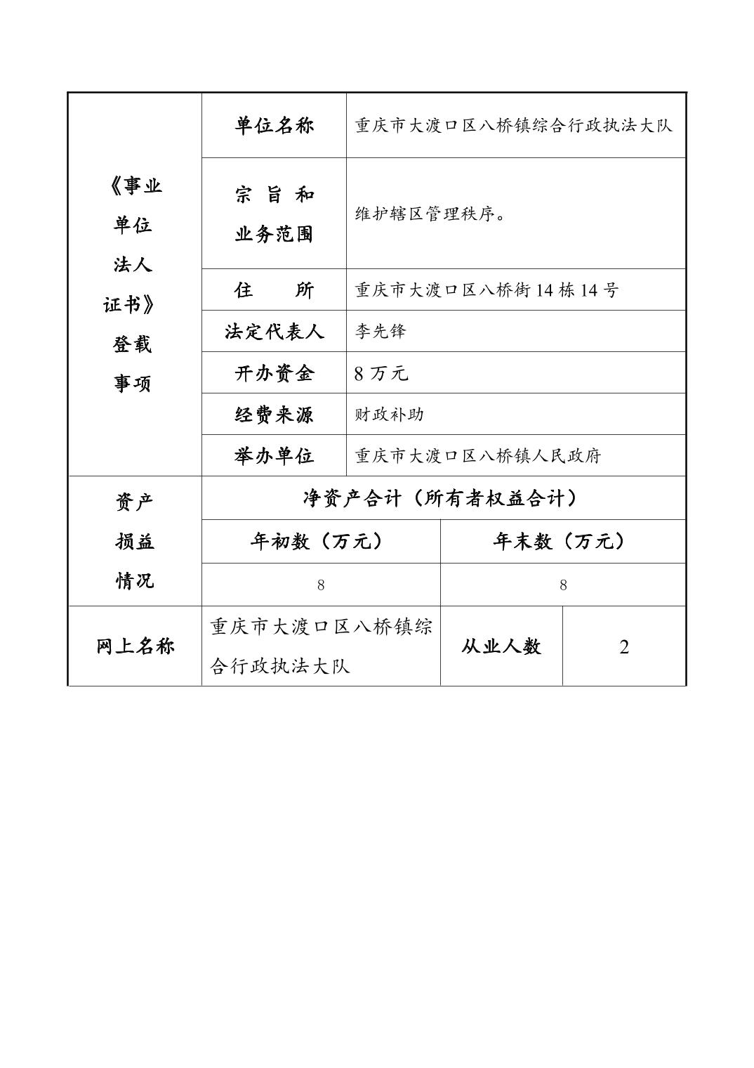 2023年度重慶市大渡口區(qū)八橋鎮(zhèn)綜合行政執(zhí)法大隊事業(yè)單位法人年度報告書