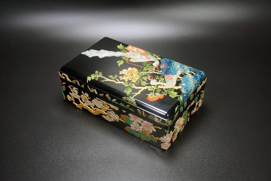 大漆作品彩繪描金華煥長方文盒