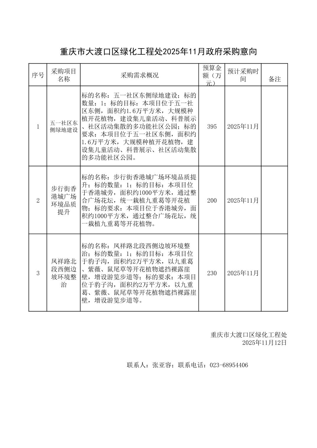 重慶市大渡口區(qū)綠化工程處2025年11月政府采購(gòu)意向公開(kāi)